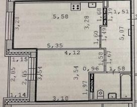 Площадь (общая/жилая/кухни) 42.9/12/18 кв. м